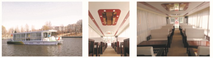 客艙空間大,乘員人數(shù)多,布置舒適,配有冷暖空調(diào)。甲板以上可根據(jù)需求選擇敞開式、半敞開式、全封閉式三 種布置。